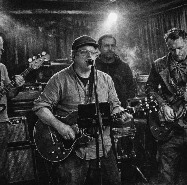 We craft songs blending psychedelic vibes with alt-country roots, layered in shoegaze and rock textures.